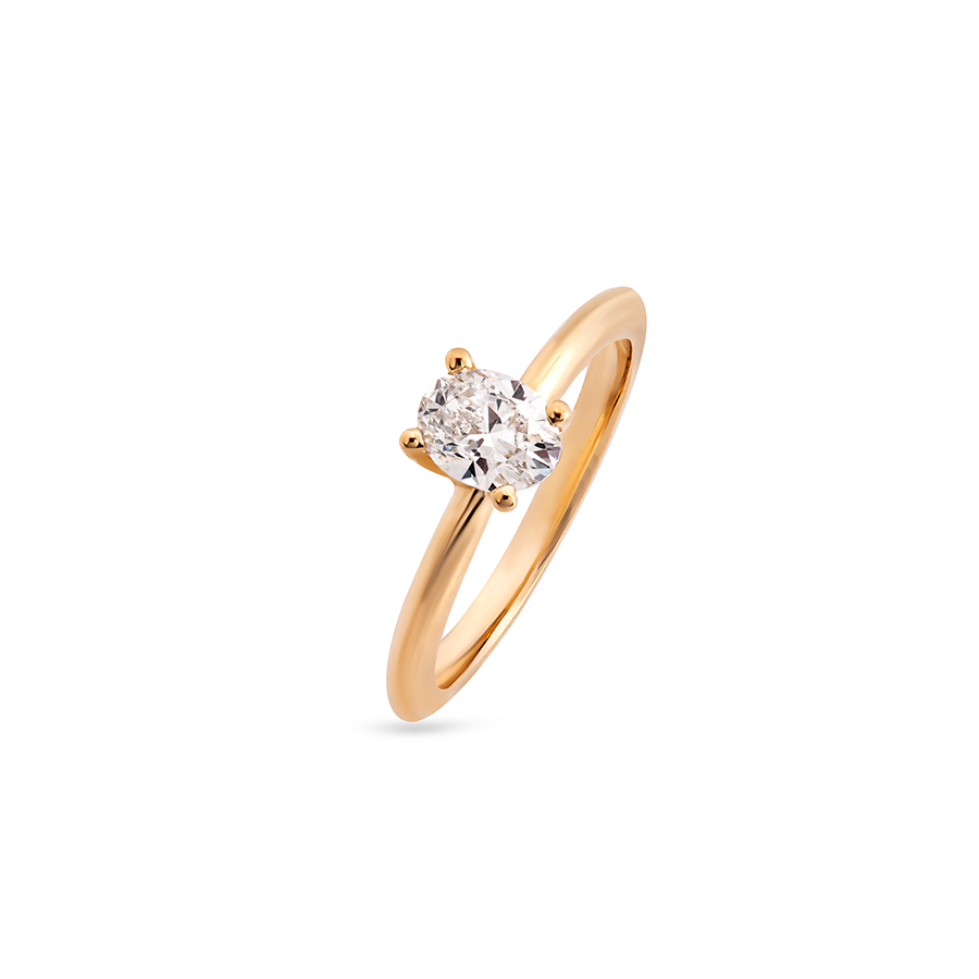 Diferente das lapidações clássicas, o Diamante oval apresenta um reflexo de luz único. Suas facetas são lapidadas para permitir que a luz percorra internamente a pedra de maneira contínua e fluida, criando um brilho intenso, profundo e constante, ao invés de reflexos pontuais. O resultado é uma luminosidade elegante, que se revela de forma delicada a cada movimento.