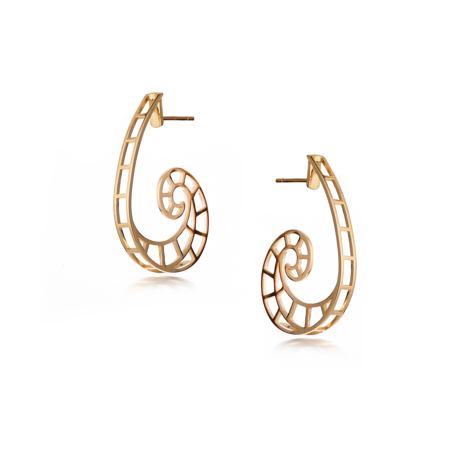 A Argola em ouro amarelo traduz a essência de uma forma leve, arquitetônica e contemporânea. Inspirada nas voltas que ornamentam igrejas e altares coloniais. A joia expressa o encontro entre história e modernidade, transformando elementos do barroco em design refinado.
