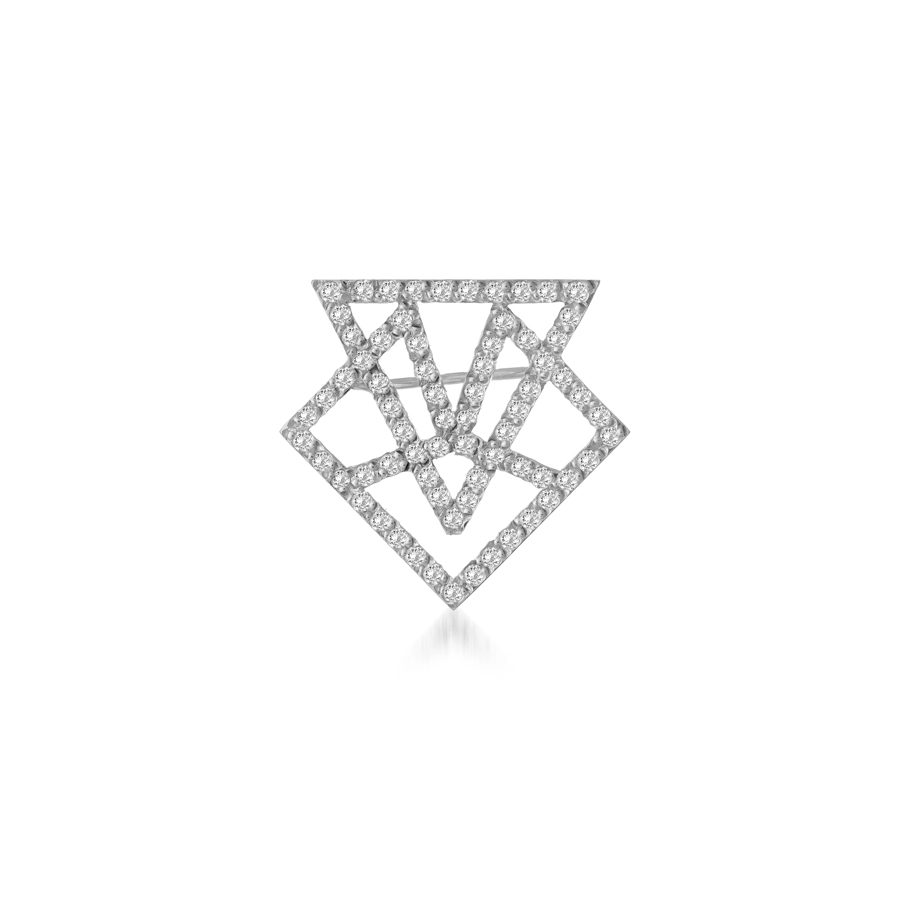 A composição aberta, leve e precisa cria um brilho contínuo, valorizando o jogo de linhas que é assinatura da marca. Um broche que carrega significado: representa história, propósito e autenticidade — e transforma qualquer look com um toque de refinamento moderno.
