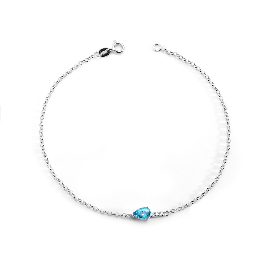 Cada joia conta uma história, como a pulseira de Topázio Swiss Blue e Diamantes, onde a pedra de tom azul faz alusão ao céu Viking.